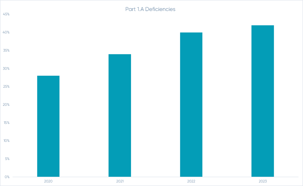Part 1.A deficiencies also known as Audits with Unsupported Opinions indicate that the auditors did not have sufficient evidence to support their opinion on the financial statements. This has clearly been one factor in the PCAOB stepping in with a new standard QC 1000, A Firm's System of Quality Control (QC1000). Previously auditing firms followed AICPA’s SQMS No. 1, A Firm’s System of Quality Management which requires firms to establish and maintain a system of compliance with applicable professional standards, with policies and procedures for independence, personnel management, client acceptance and other matters.